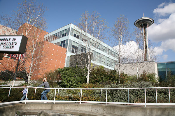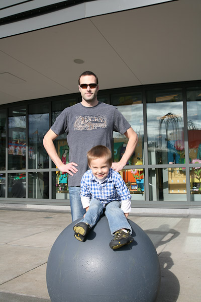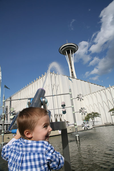 Avery turned three today. We celebrated by taking him to the Seattle Science Center, something he’s been asking to do for a while. The last time we went he was about a year-and-a-half old. He wasn’t so keen on the dinosaur exhibit as it was a bit too realistic. He loved the butterflies and the water cannons outside. After the museum we wandered around under the “Space Noodle” and then stopped by Cupcake Royale for a celebratory treat.