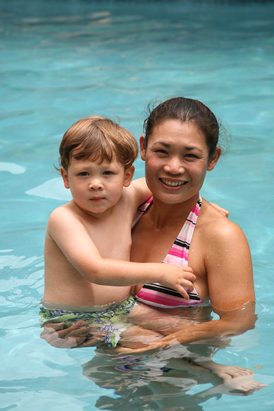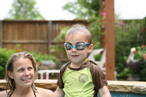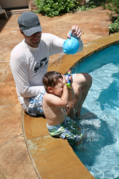 We were particularly impressed with Avery’s increased confidence in the pool over the course of the week. Although he’s taken swimming lessons and been in and around pools often, Avery has always been very cautious in the water. But by the end of this trip, he was swimming underwater between Mommy and Daddy. Each time he came up, he took a breath, said “again,” and dove back under water. The pool really wore him out and he took some good naps while in Texas.