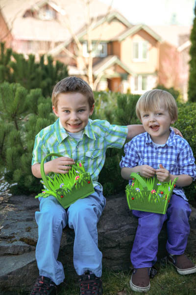 We enjoyed a nice, relaxing Easter this year. Jonathan and I got to go on a hot yoga date in the morning while Nana and Grandpa watched the boys. After we got back there were Easter buns, Easter baskets, an egg hunt, carrot ginger soup, and lots of playing in the sunshine!