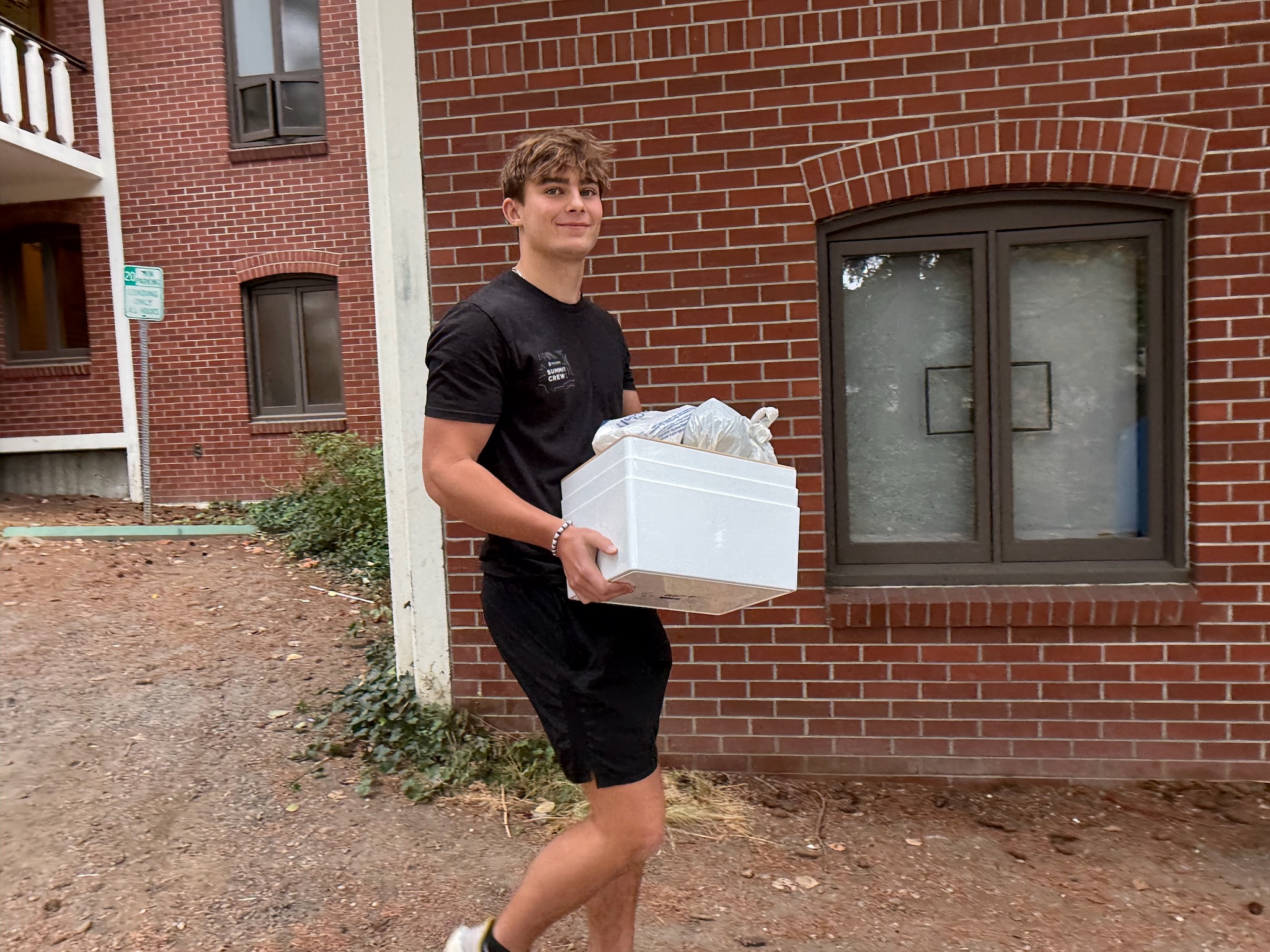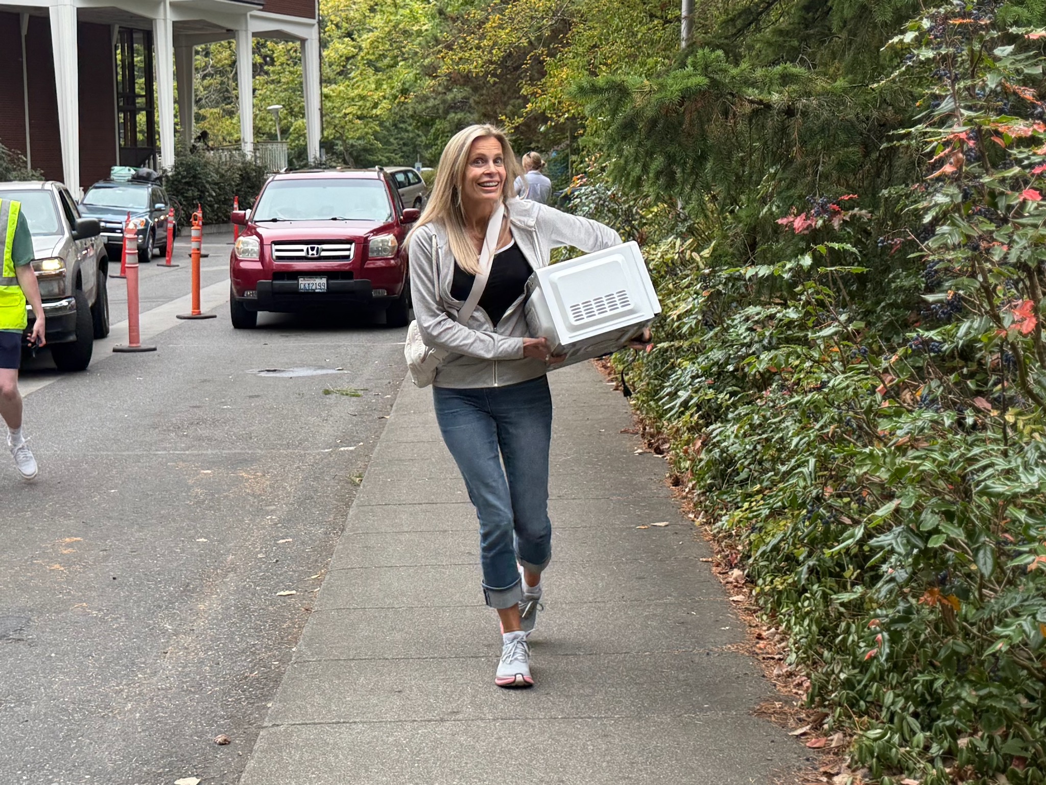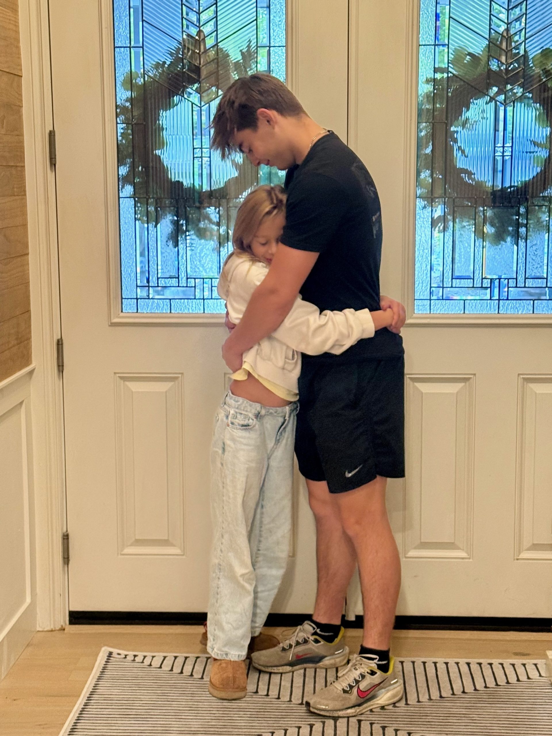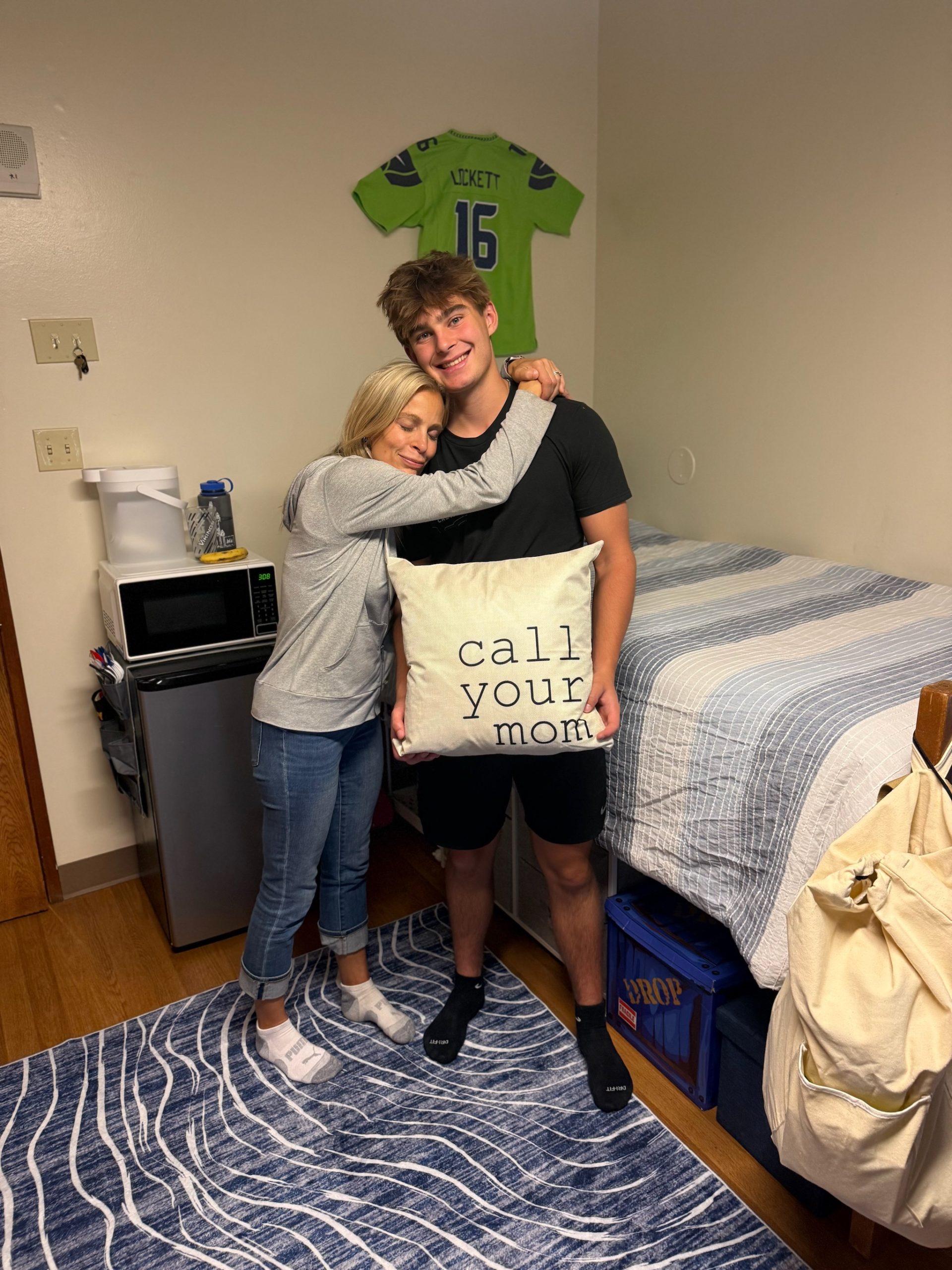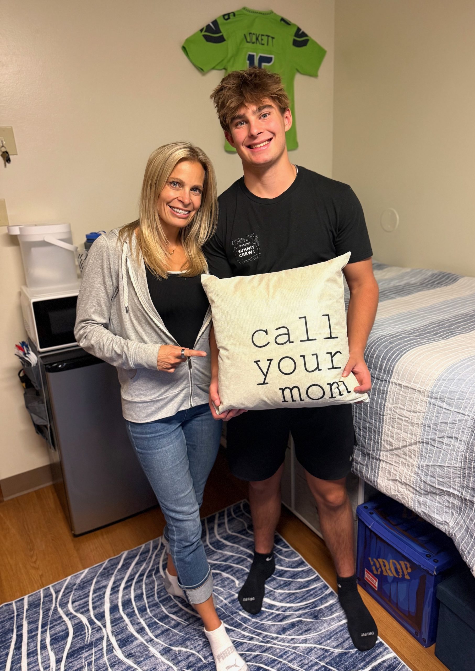 I surprised Avery with this pillow at move-in. It says “text your mom” on the other side.