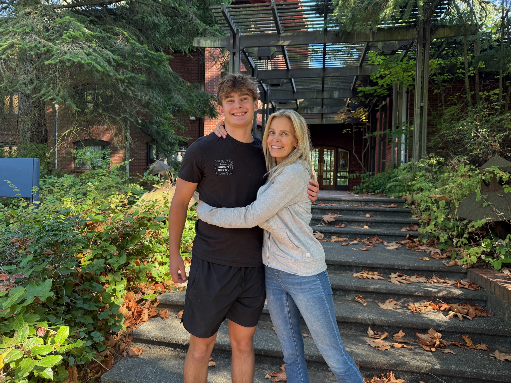 I surprised Avery with this pillow at move-in. It says “text your mom” on the other side.