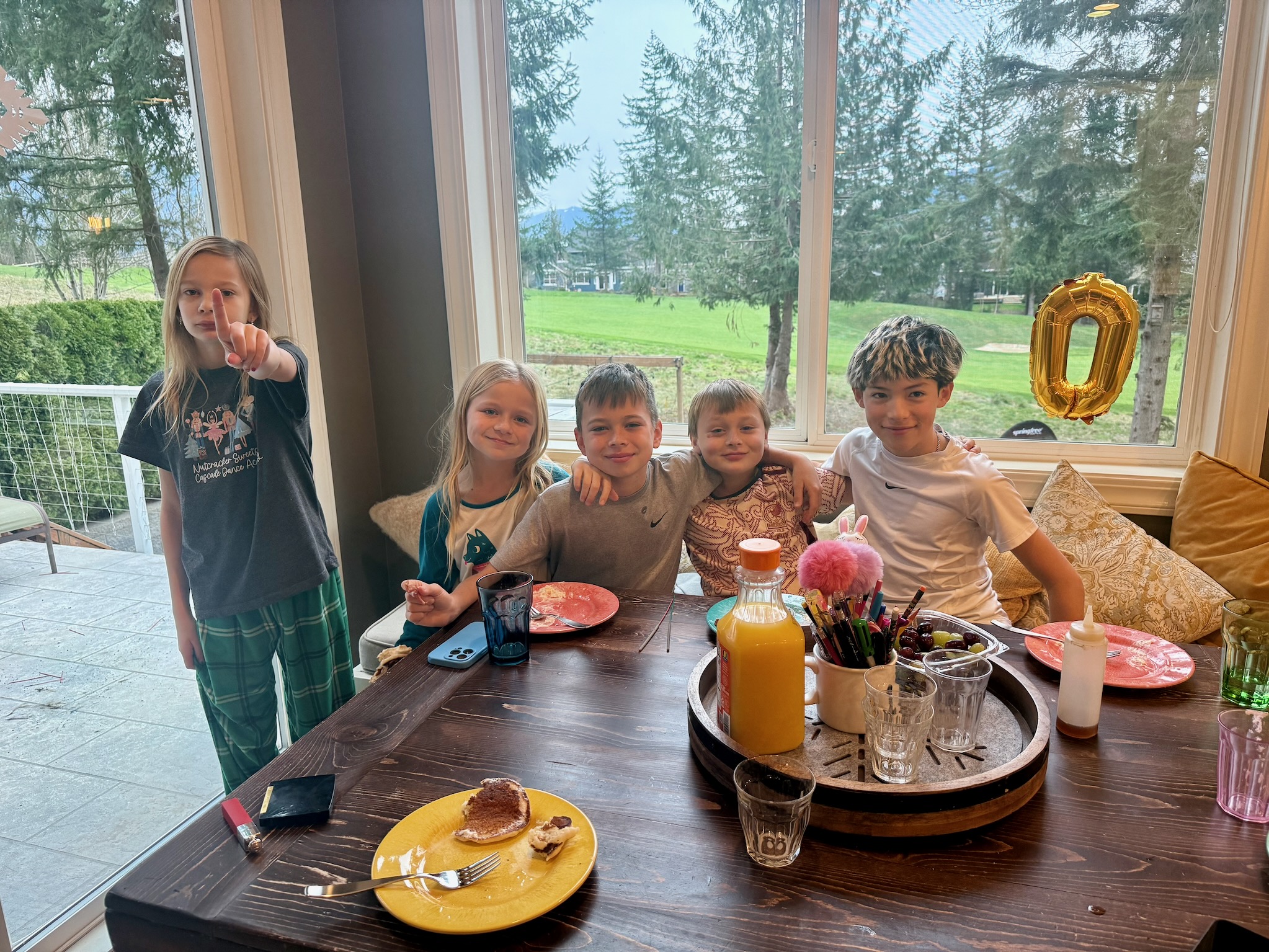 The kids had a sleepover – here they are enjoying pancakes the next morning