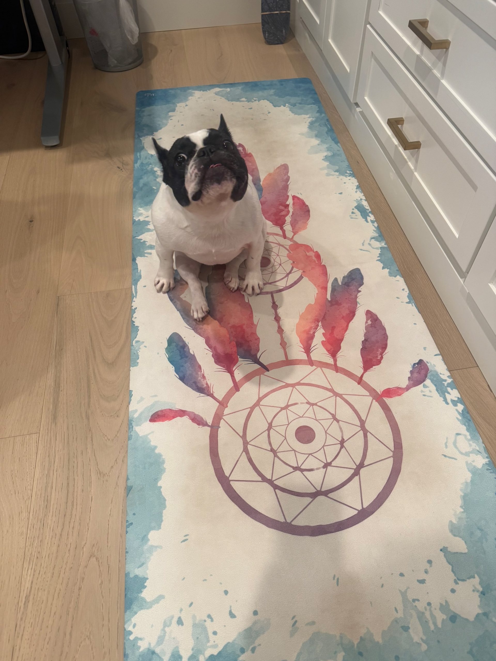 Phoebe, wiping her bum on my yoga mat! Bad dog!