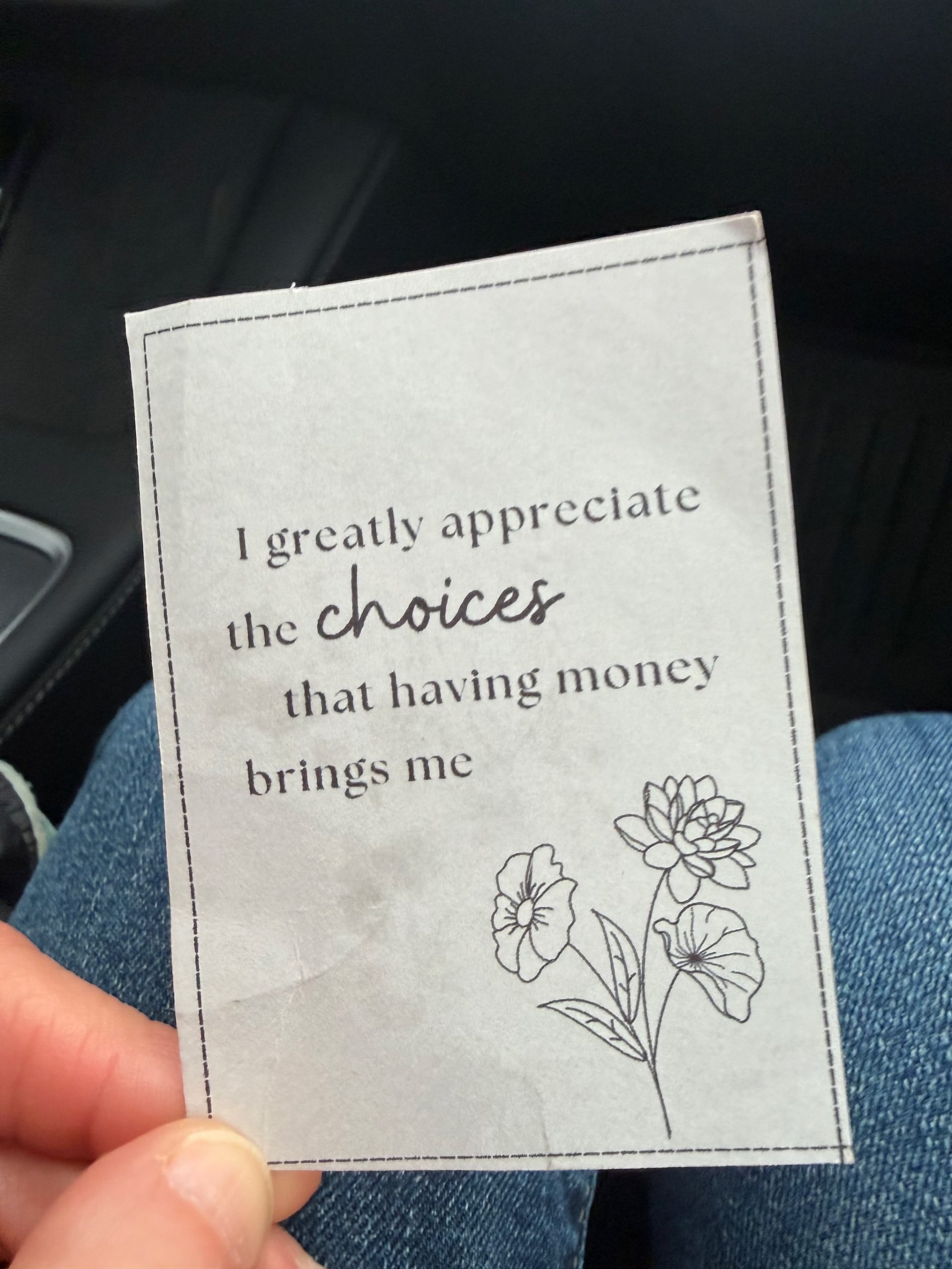 The dancers all got little cards with affirmations on them. Layla got this one, which I thought was a peculiar message
